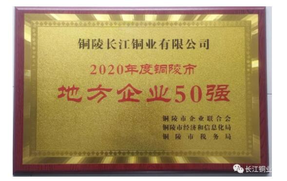 [喜訊]熱烈祝賀我司榮獲“2020年度銅陵市地方企業(yè)50強”