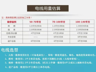 三、一般家用電器多,房間面積大,建議盡量使用大平方的電線(xiàn)。